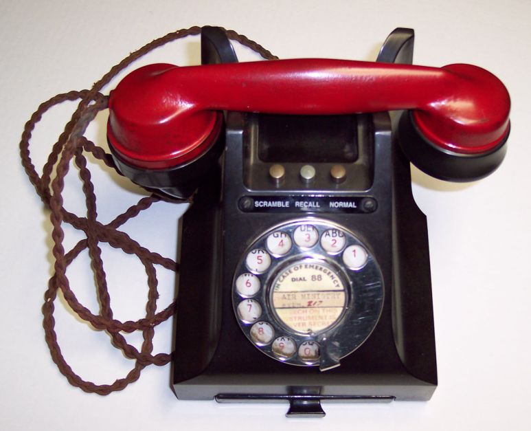British Air Ministry Phone. Although mostly black with a red handset, this Air Ministry phone had a "scramble" feature. Used during WW-II and into the 1950's likely. Limited information on this telephone on the web. ![]()