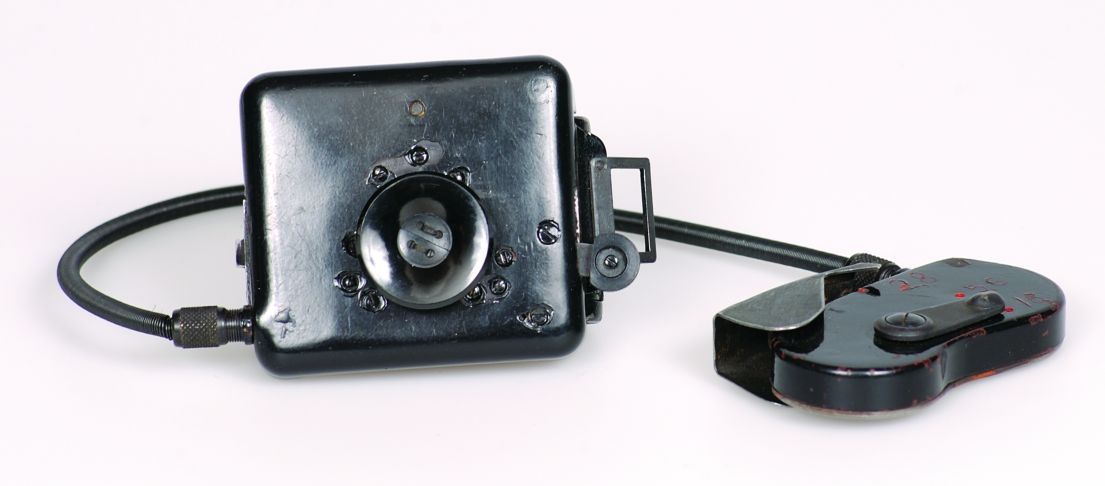 Appareil-photo "trou d'épingle" du KGB. Fabriqué par l'Union Soviétique probablement durant les années 1980. | Faisant souvent partie d'une trousse de clés. Mis en évidence à la page 69 du livre de Keith Melton "Le Parfait Espion" (édition 1997). | |