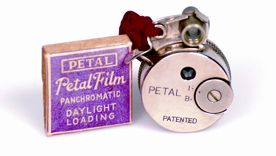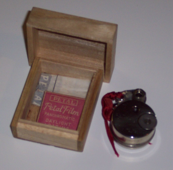 Appareil-photo miniature Petal. | Produit au Japon tout probablement dans les années 1940 et début 1950. Voici un photo avant-plan de cet appareil-photo boîte de film. Cet appareil-photo est aussi mise-en-évidence sur la couverture de l'édition octobre 1987 de la publication Smithsonian. | Voici un excellent site web dévoué à l'histoire de l'appareil-photo Petal. |