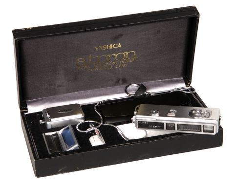 Appareil-photo Atoron de Yashica. | Produite à partir de 1965 en Allemagne de l'Ouest. Celle-ci fait l'utilisation de cassettes film Minox. | Excellentes photos du matériel Yashica à site de photos et détails historiques à cet autre site sur l'histoire des caméras miniatures. |