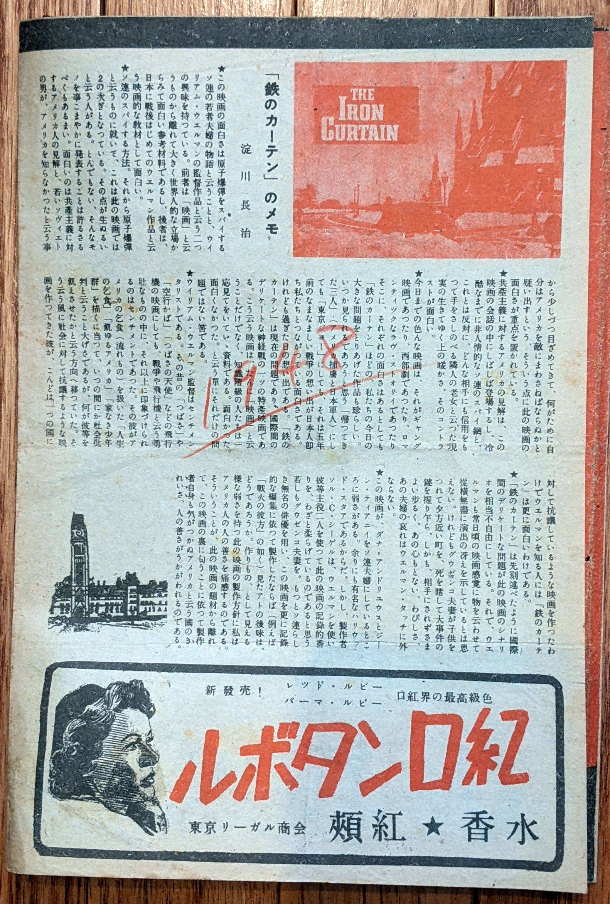 "The Iron Curtain" Movie Program (in Japanese) - 1948. | Small movie program written in Japanese:
