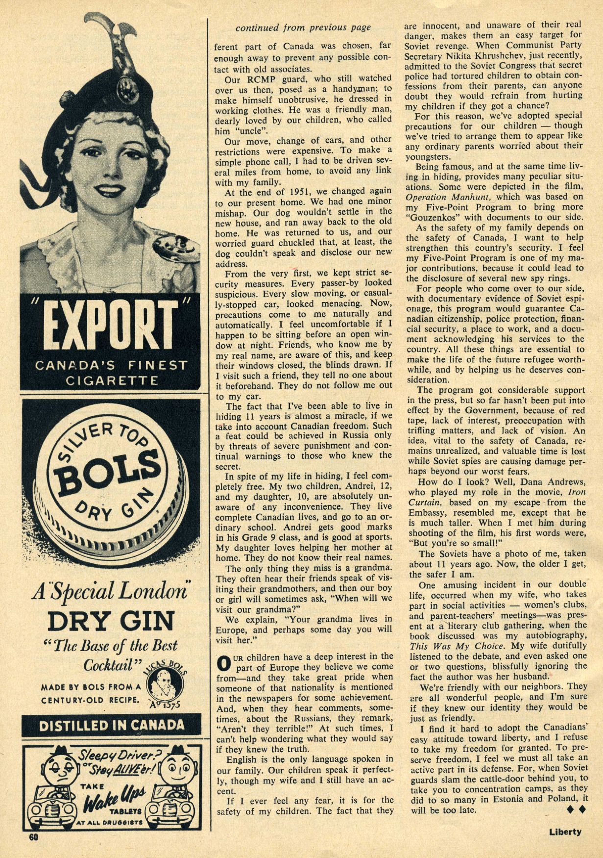 This issue of Liberty Magazine (24 Aug 1956) contains an article by Igor Gouzenko. |